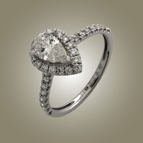 Pear Shape Diamond Solitaire Halo Ring 0.73cts #2036