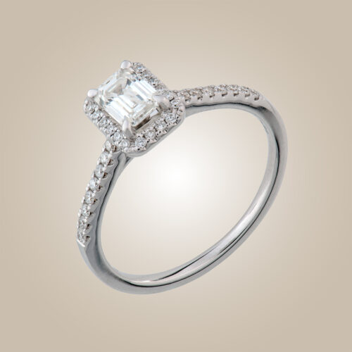 Emerald Cut Diamond Solitaire Halo Ring 0.50cts #2008