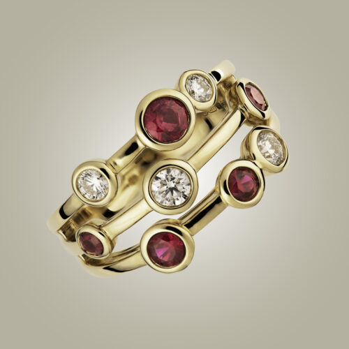 18ct Yellow Gold Ruby and Diamond Bubble Ring #2005