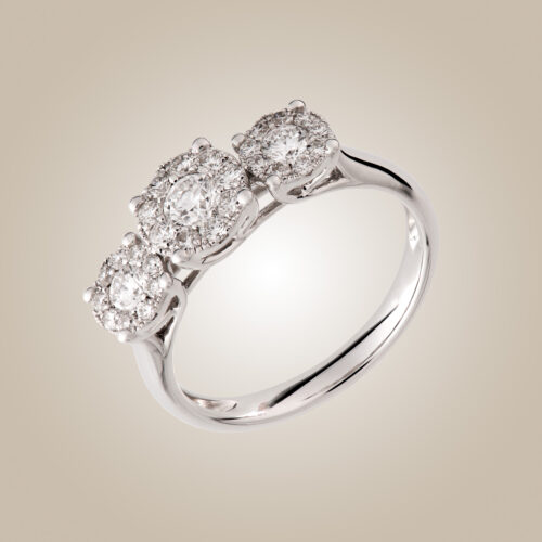 White Gold Diamond 3 Stone Cluster Ring 0.74cts #2009
