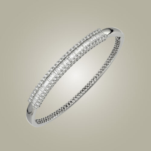 Round and baguette cut diamond bangle 2.00cts #BA0001