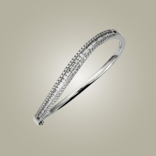 Round and baguette cut diamond twisted bangle 2.45cts #BA0002