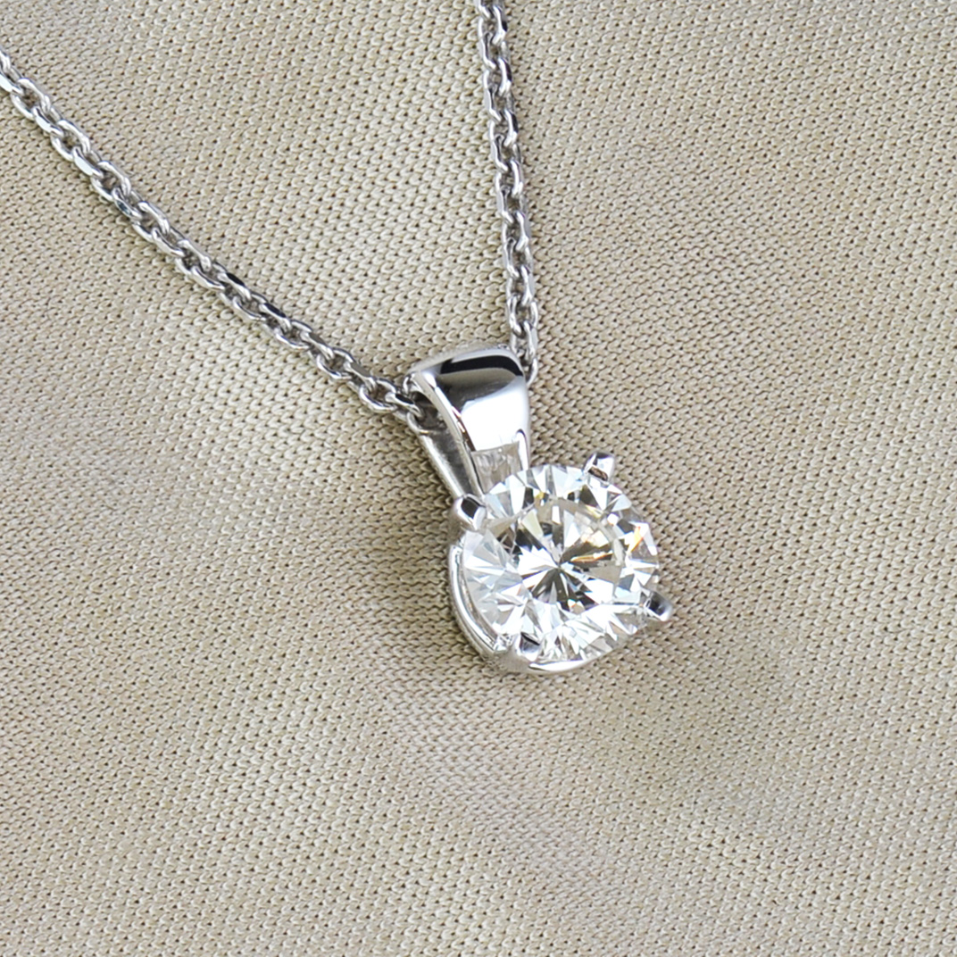 Pre-owned round brilliant cut diamond solitaire pendant and chain 1.11ct #0582