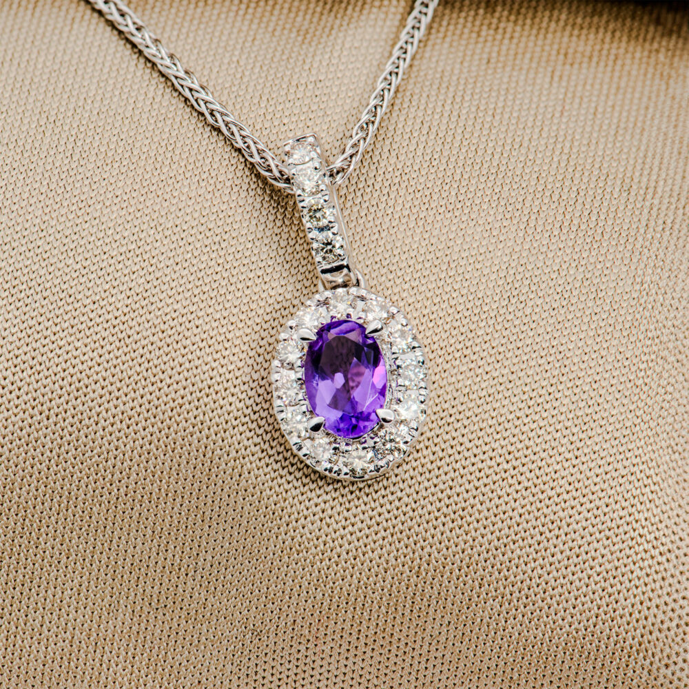 Purple amethyst and diamond cluster pendant