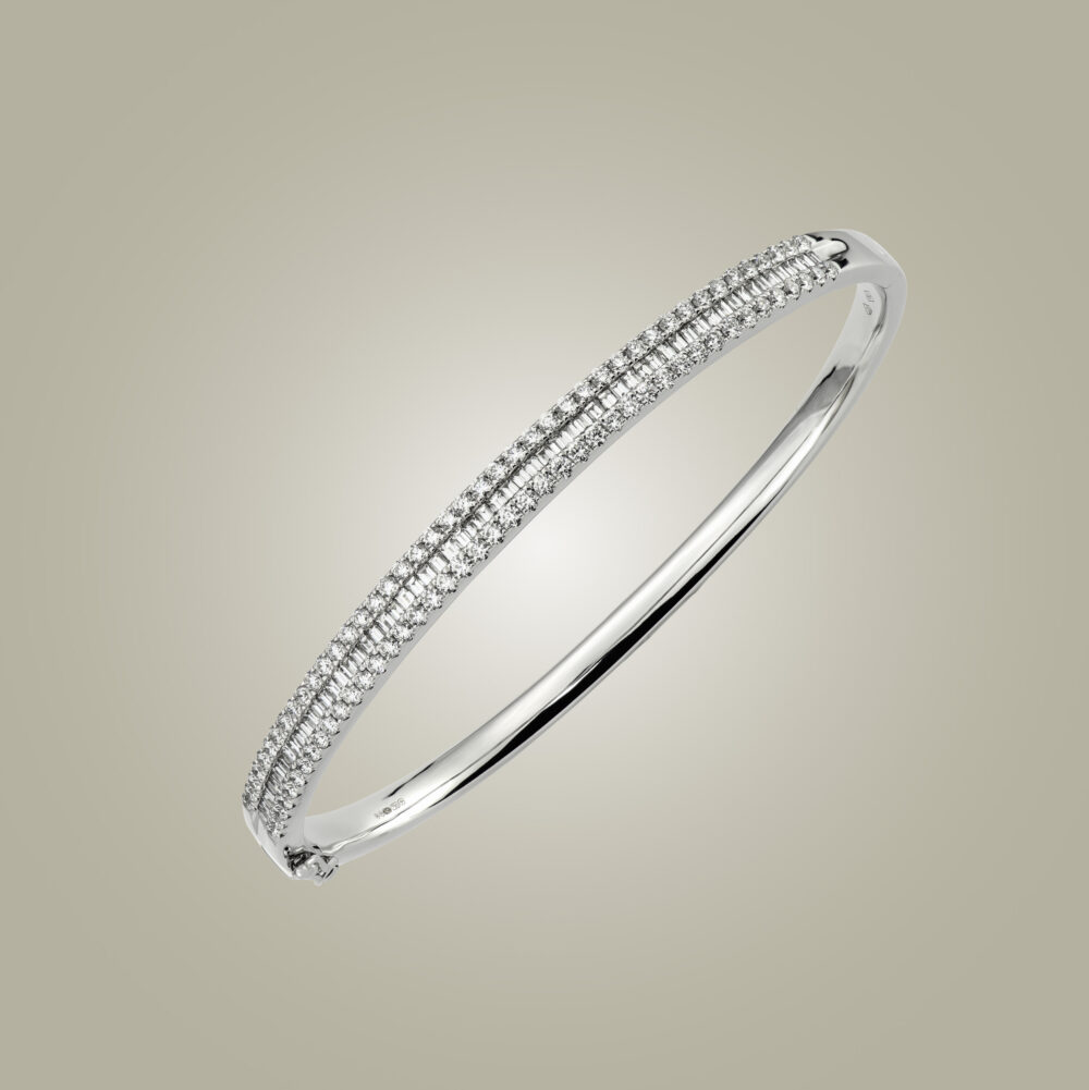 Round and baguette cut diamond bangle 1.98cts #BA014
