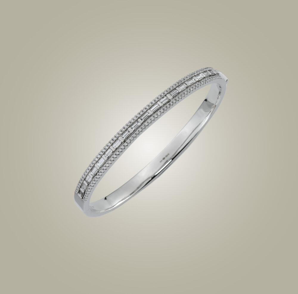 Round and baguette cut diamond bangle 2.00cts #BA0011