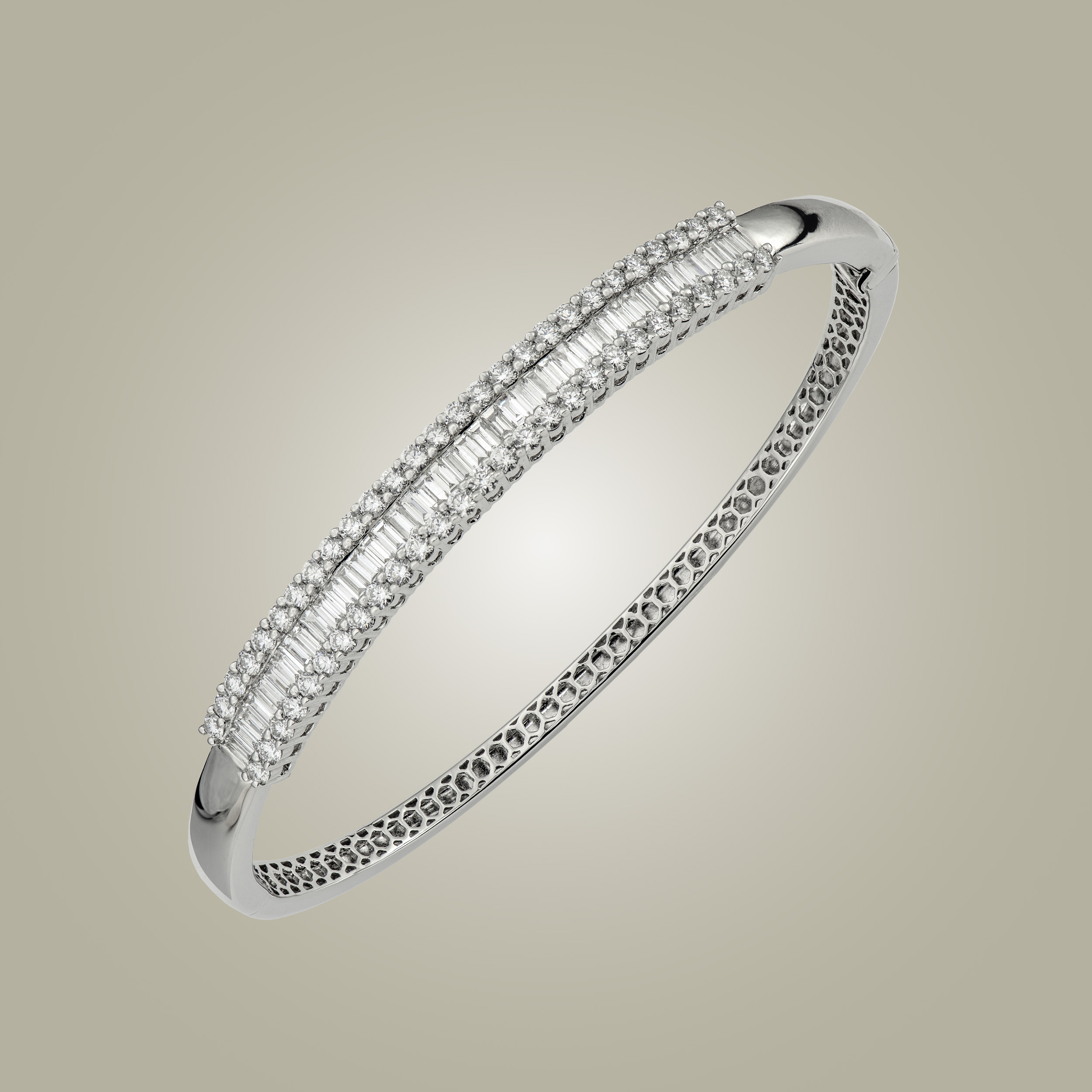 Round and baguette cut diamond bangle 2.71cts #BA0003